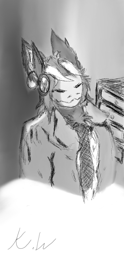 A piece I did in appreciation for protohub.online Exogenis, in the style of Hotel Dusk.