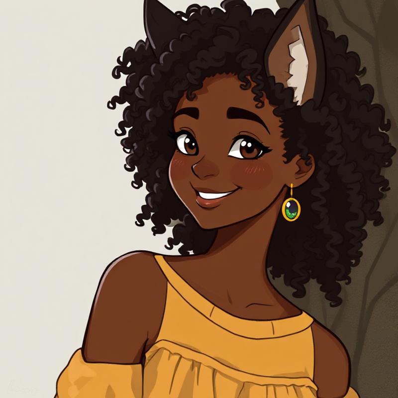 HAI sooo yah I made an OC lol here she is. her name is Amara Okoye. Amara Okoye is an eighteen-year-old furry who has lived in the furry world all her life. With a bubbly and friendly personality, she’s well-liked by her friends but can get snarky when the situation calls for it. Known for her beauty and very curly hair, Amara is also a talented artist, often drawing for her friends to capture their personalities or special moments. She feels completely at home in the furry world, where she’s built strong connections and embraced her feline traits, such as independence, agility, and curiosity. Amara’s playful nature and her loyalty to her friends make her a beloved member of the furry community, and she’s always there to help others adapt to the world she knows so well.