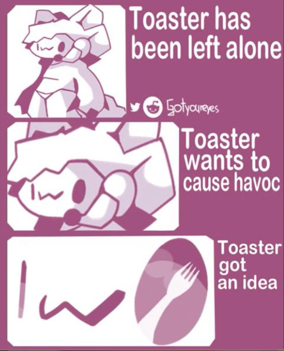 Never leave your toaster alone in a house with metal it can easily shove up it’s…uuuhhhh…slots…