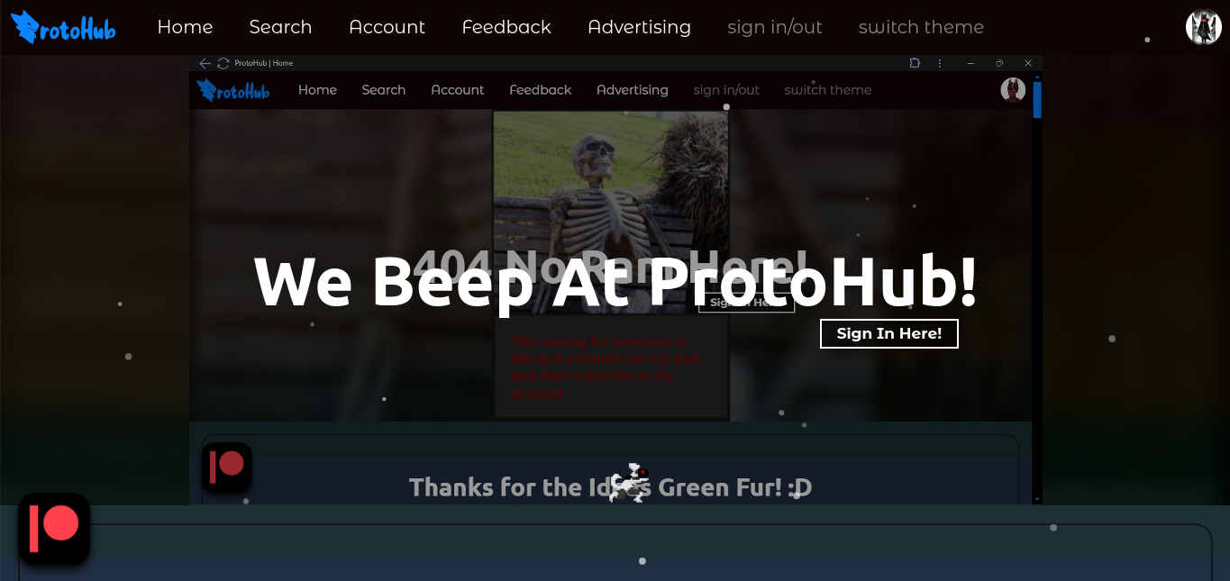 ProtoHub is an image posting website for the furry community, with the pourposte of helping mehcanical / electrical furries share art and to help the furry community find and grow that side of the community.