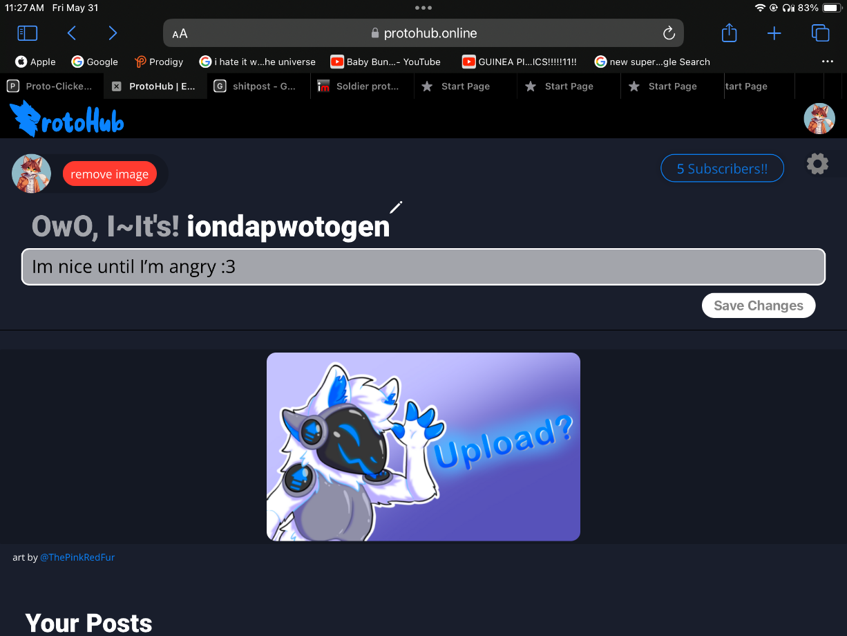 ProtoHub is an image posting website for the furry community, with the pourposte of helping mehcanical / electrical furries share art and to help the furry community find and grow that side of the community.